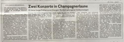 Nice critic from Brahms Concerto in Erlangen with "Junge Philharmonie Erlangen" und Gordian Teupke.