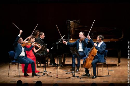 Das casalQuartett klingt verführerisch edel und durchsichtig schön und sorgt für die elegante Note an diesem Abend. Brillant sind die Vier in Haydns G-Dur-Quartett. Und brillieren, dann wieder mit Say, in Schumanns Es-Dur-Klavierquintett. Hier glänzt Fazil Say als feinnerviger Kammermusiker. Jubel, Bravorufe. WESTDEUTSCHE ZEITUNG